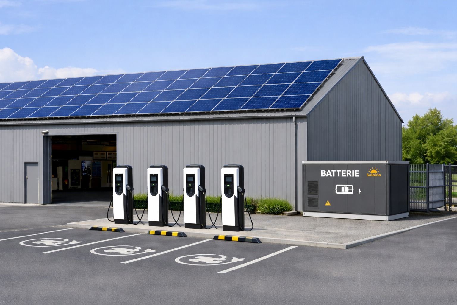 Infrastructure de recharge pour flottes d’entreprise et zones logistiques. Couplage solaire disponible.